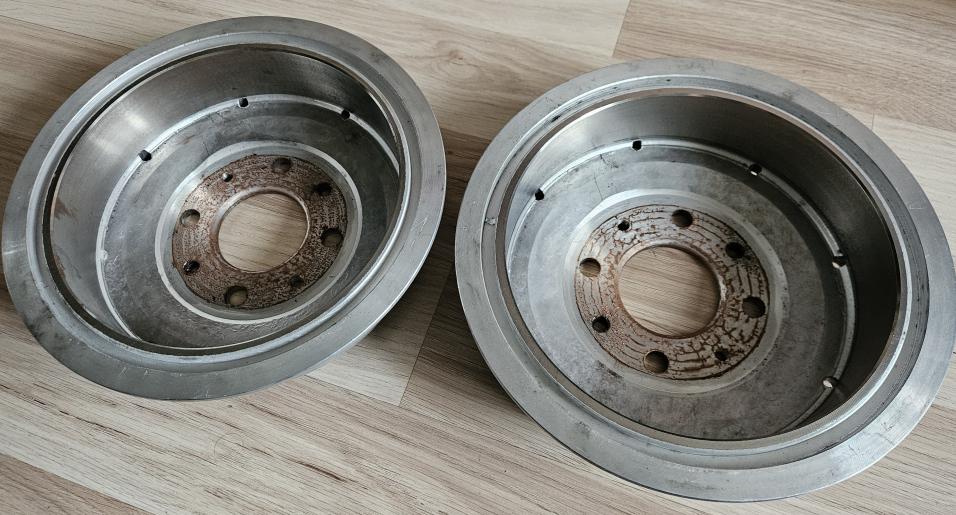 Ещё дополню отзыв. Снял я эти барабаны, хотел токарю отдать для проточки. Но присмотрелся внимательно и увидел что-то похожее на трещины на двух барабанах (абсолютно идентичные). Также в этом месте пальцем явно ощущается "горб" и металл переливается разными цветами, как обычно бывает при сильном перегреве. В общем, не рискнул я их использовать вообще. Мусор полнейший. Разве что какие-то часы самодельные из них сделать в гараже...