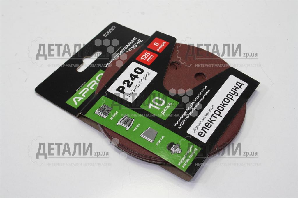 Круг (диск) наждачный самоклеющийся 125мм 8 отверстий Р240 APRO 10шт