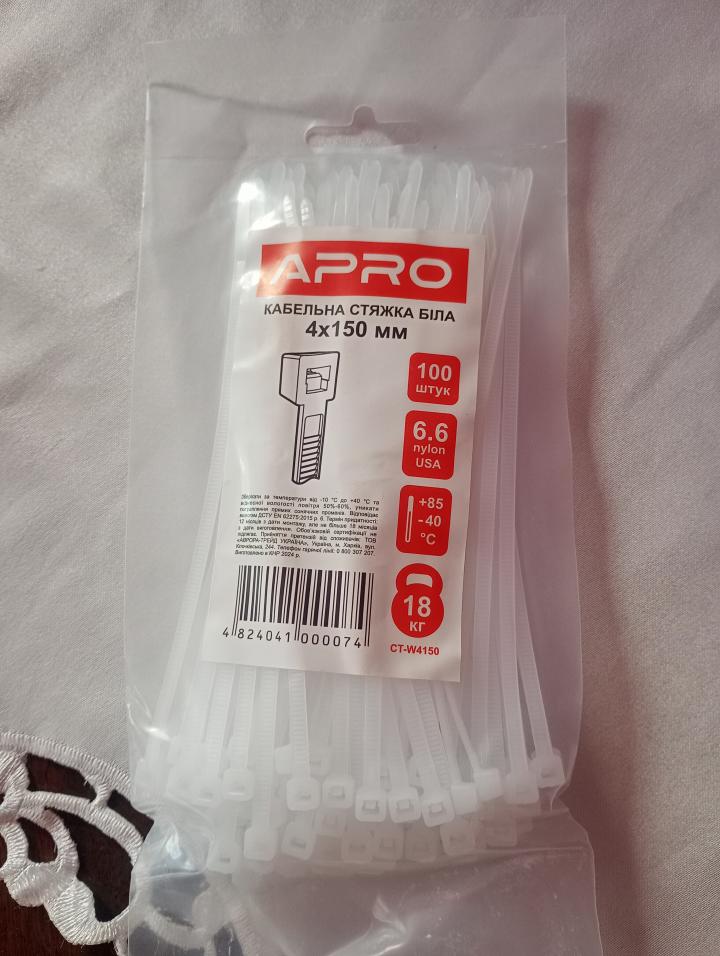 Хомут пластиковый 150х4 (100 шт) белый APRO